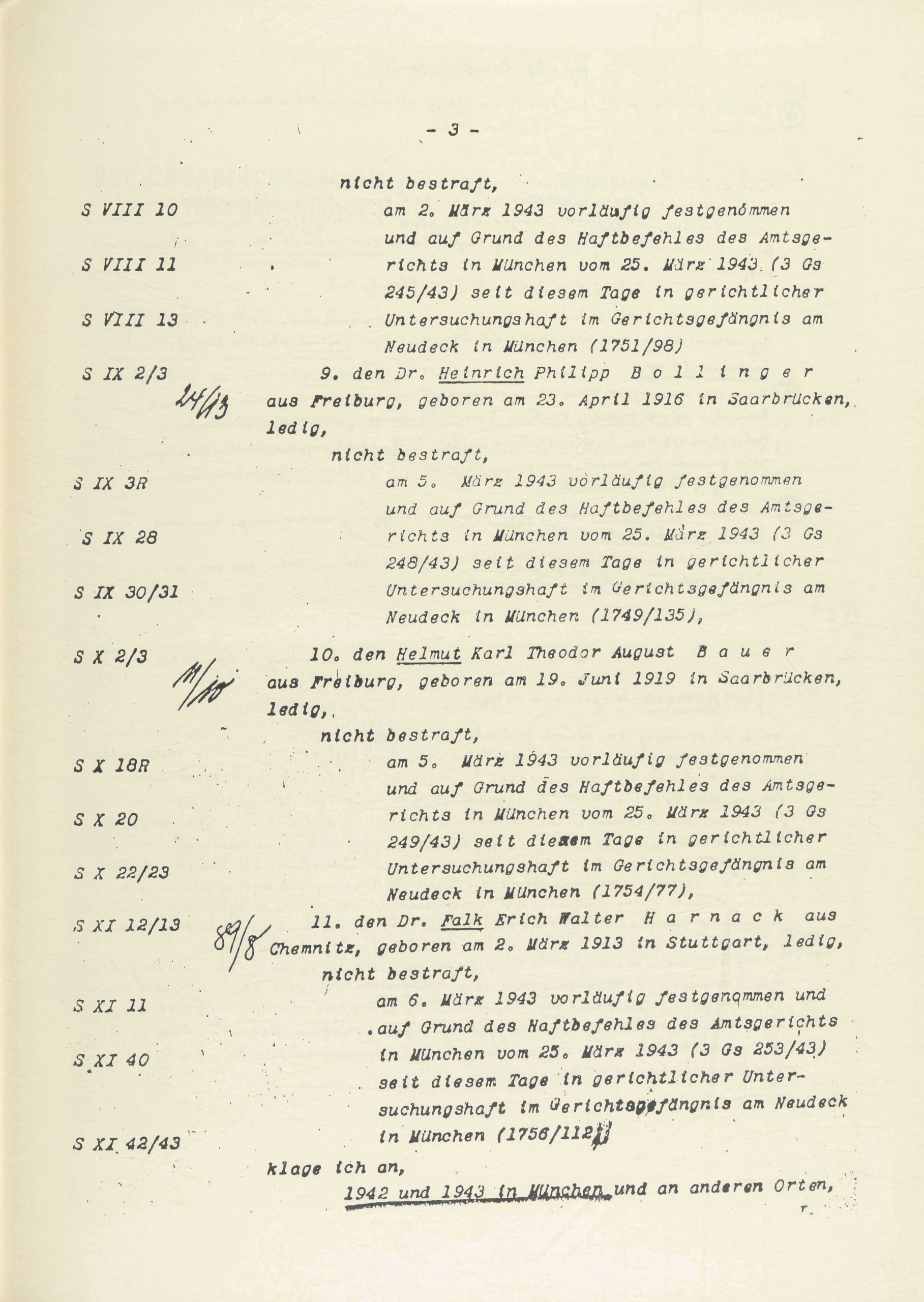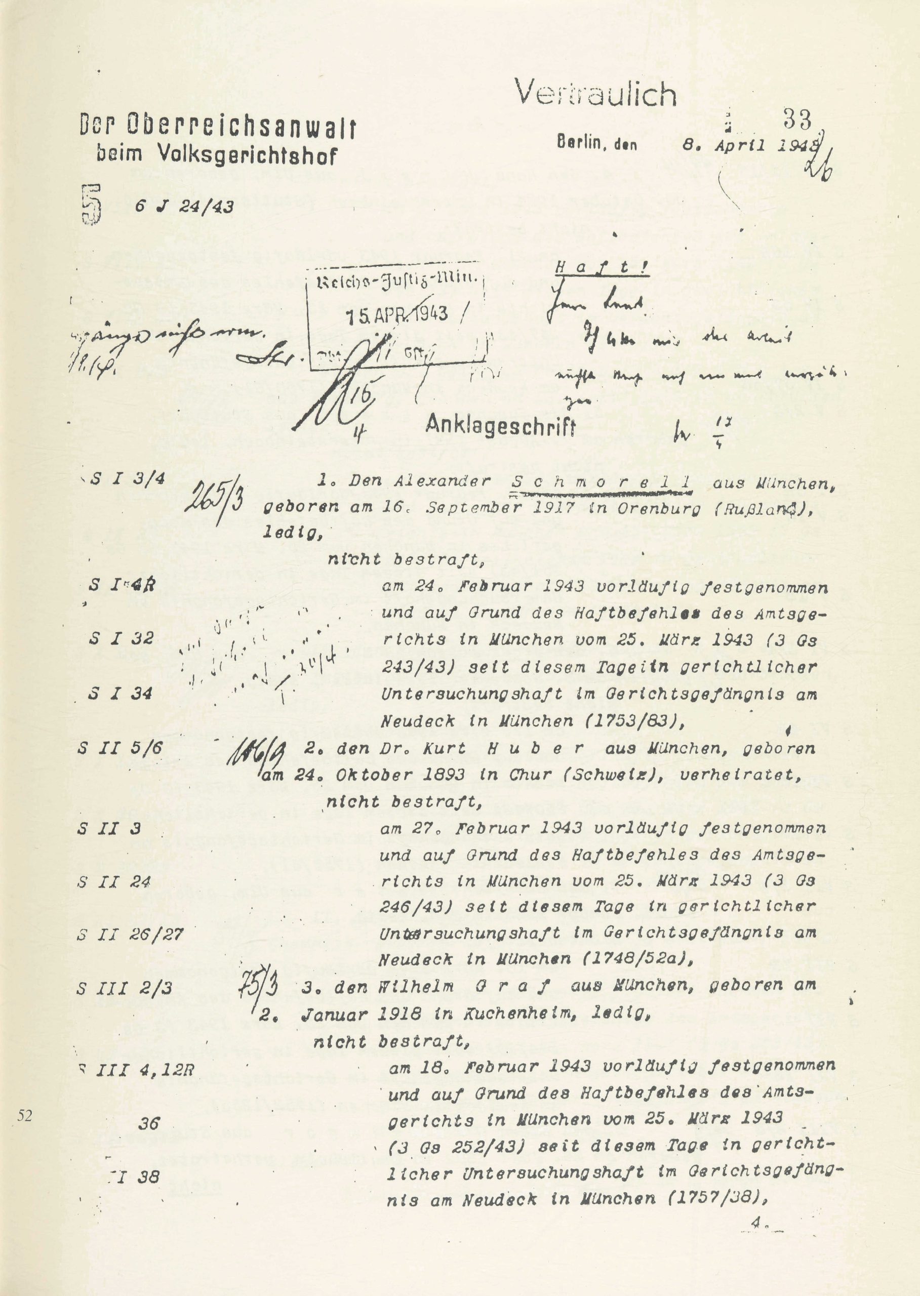 Anklageschrift im zweiten Prozess gegen Mitglieder der weißen Rose