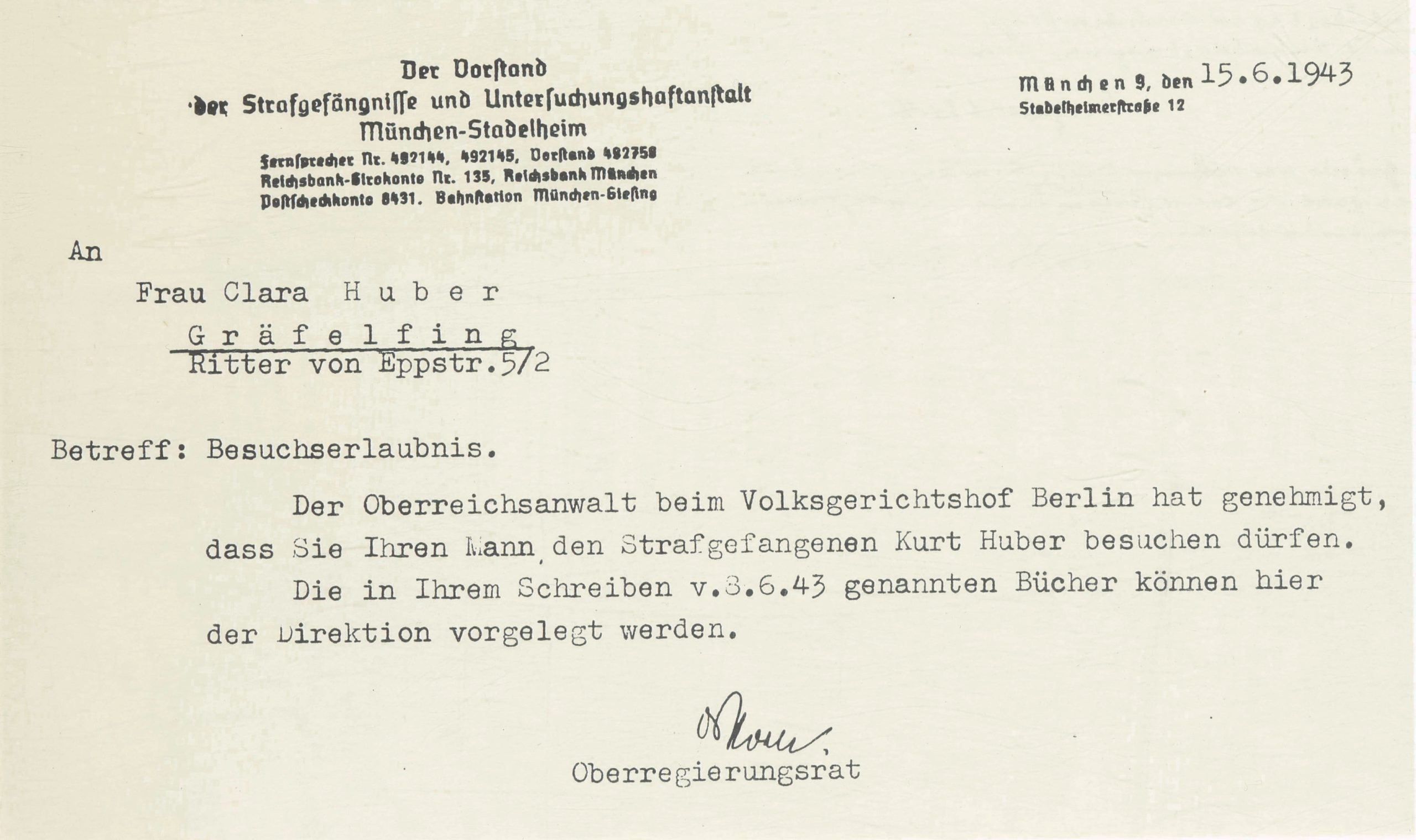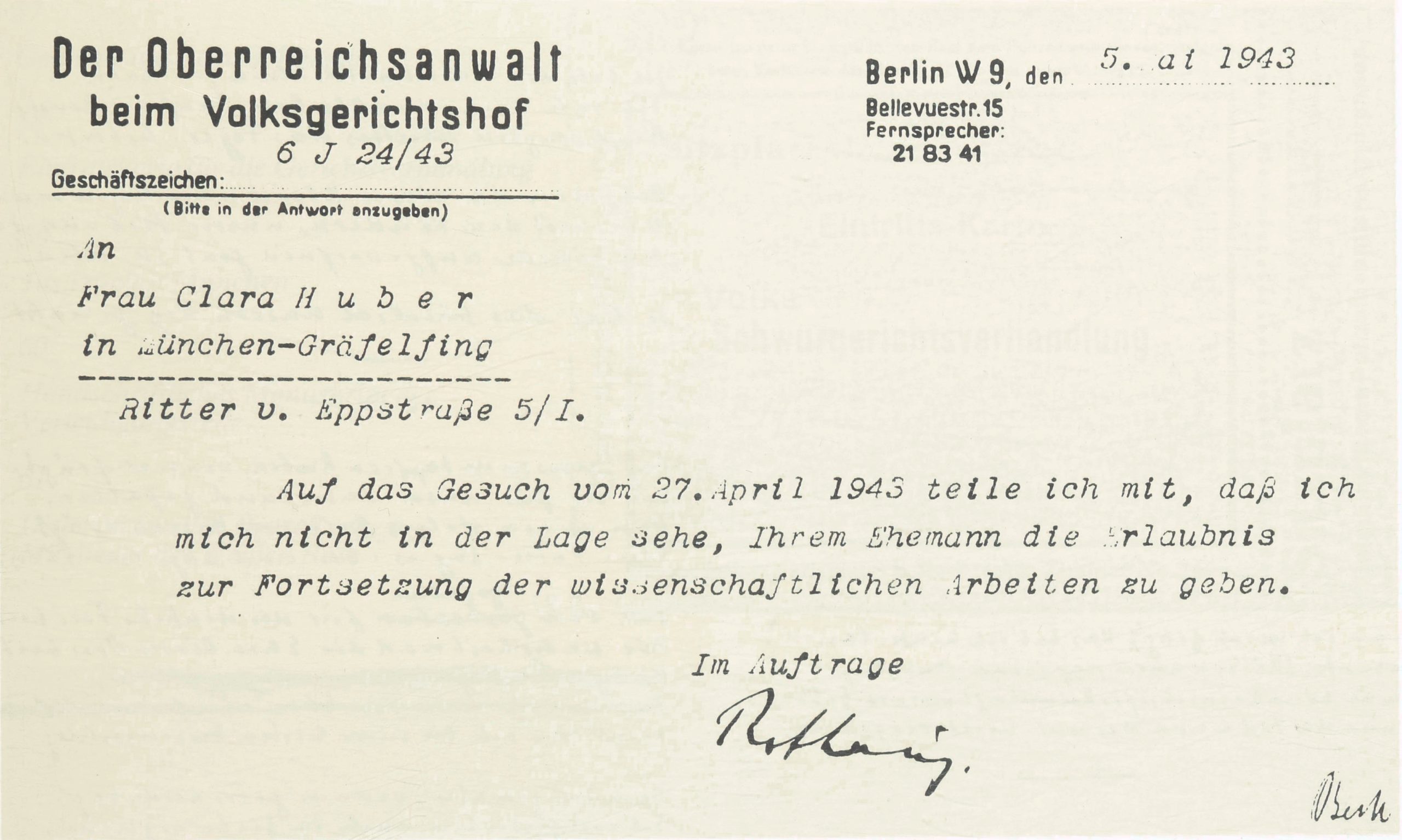 Schreiben des Oberreichsanwalts beim Volksgerichtshof