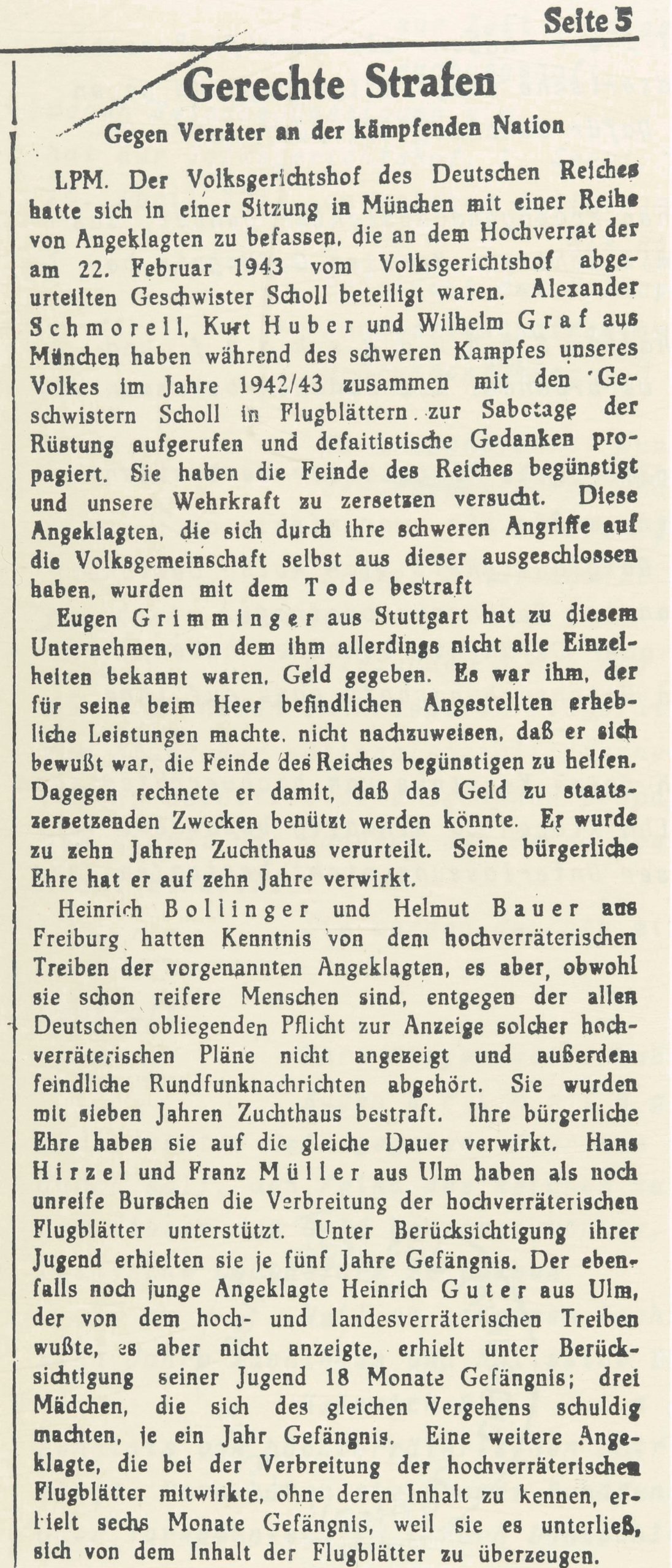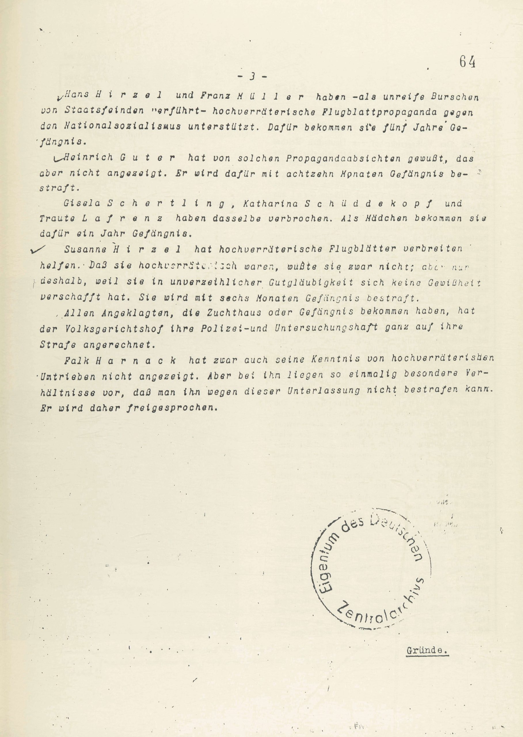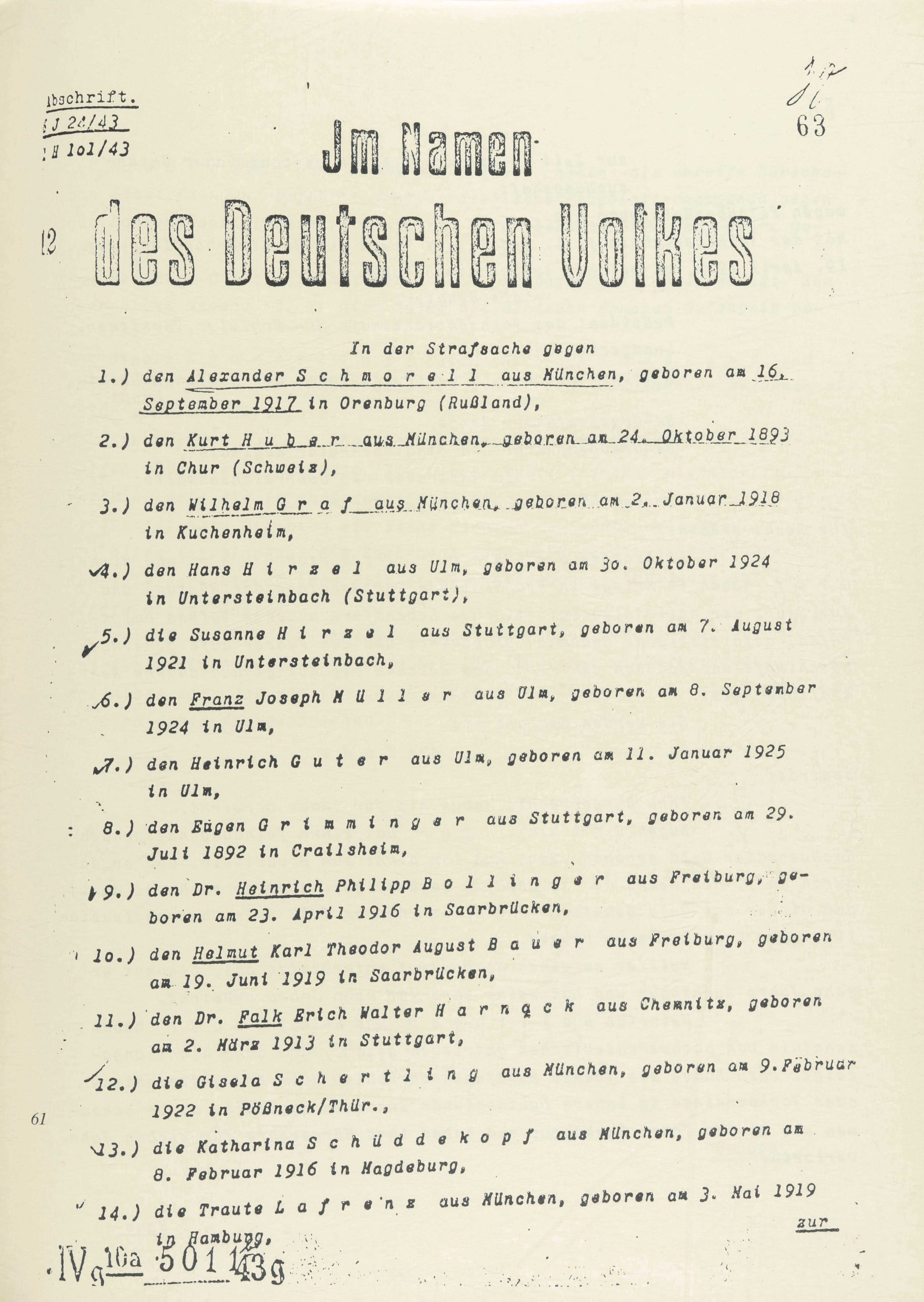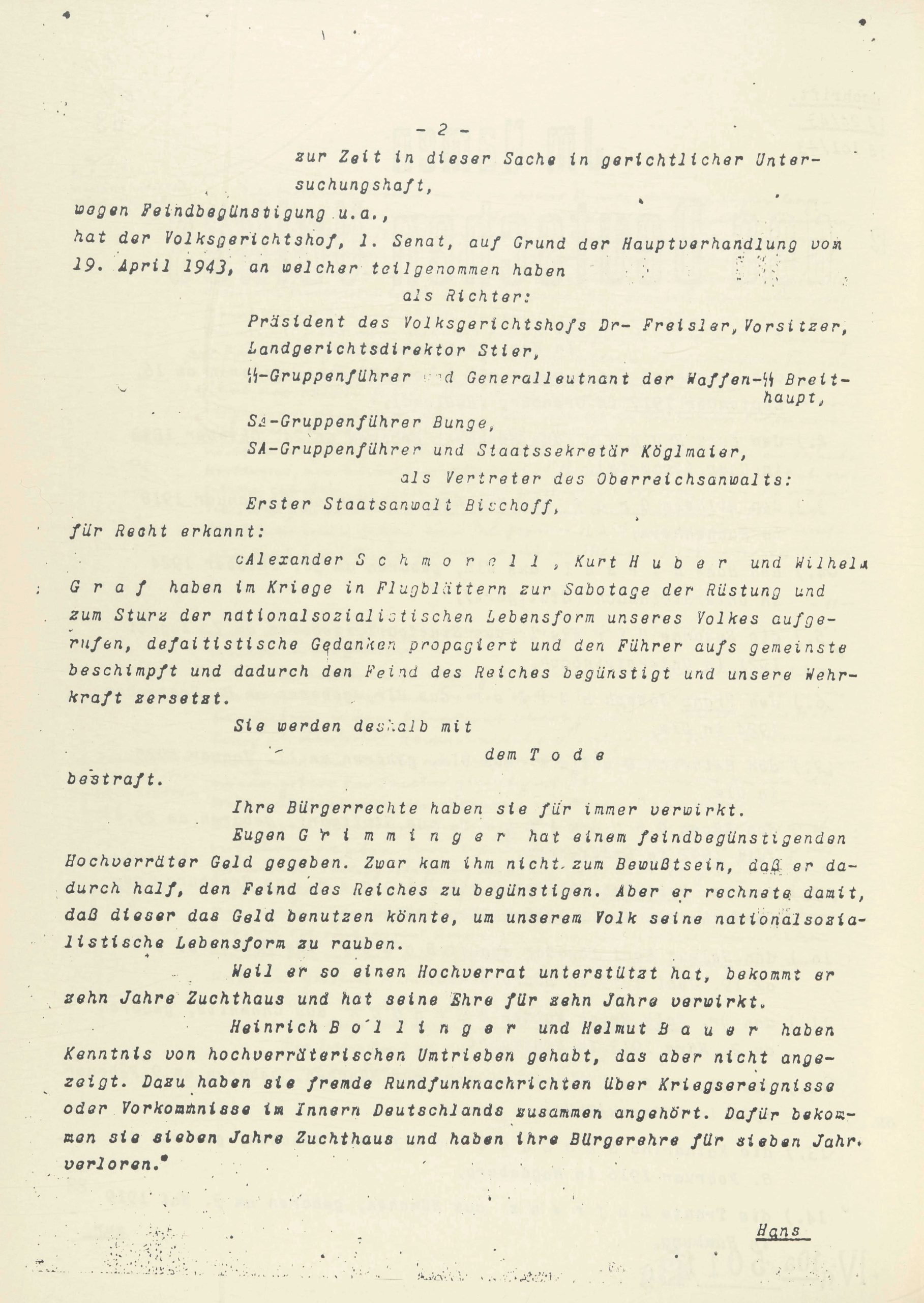 Urteil im zweiten Prozess gegen Mitglieder der weißen Rose