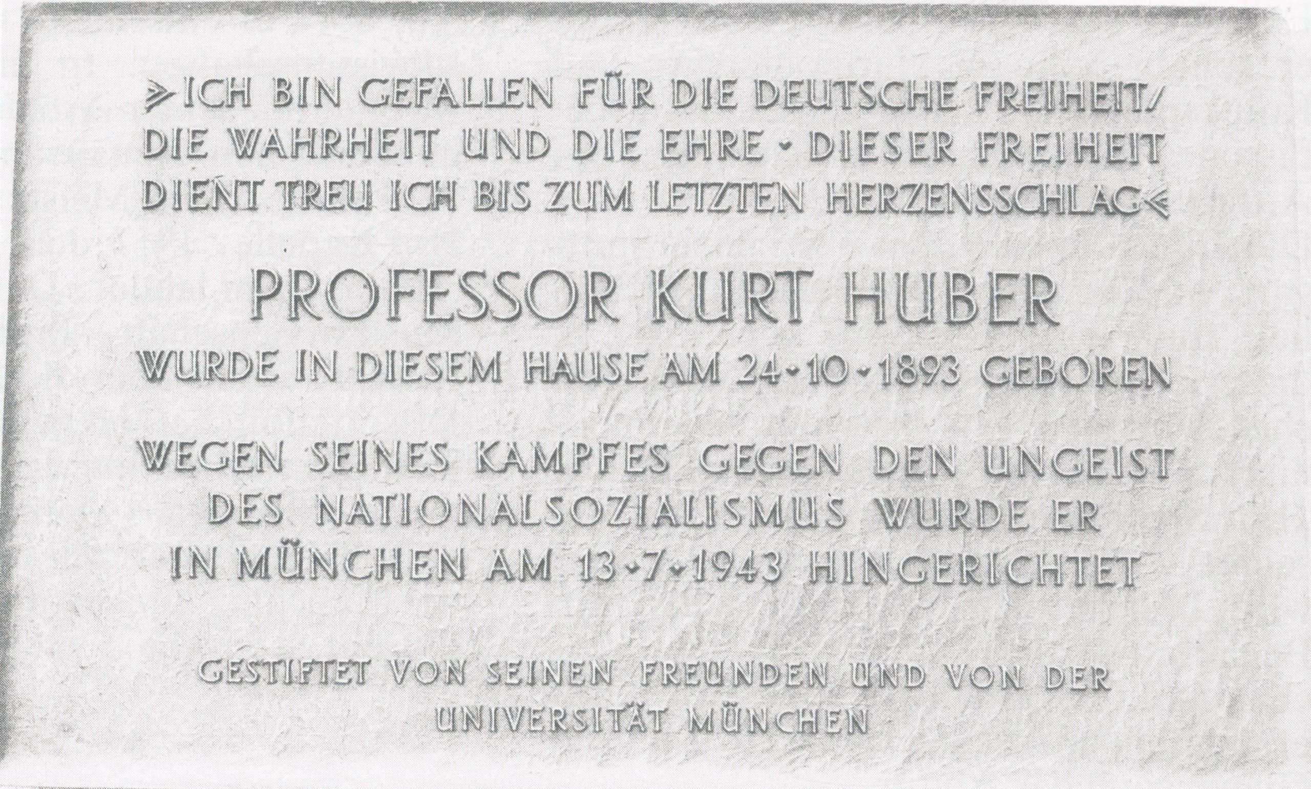 Das Zitat bezieht sich auf ein im Gefängnis verfasstes Gedicht Kurt Hubers, es müsste eigentlich lauten: „… dieser Dreiheit dient treu ich …“